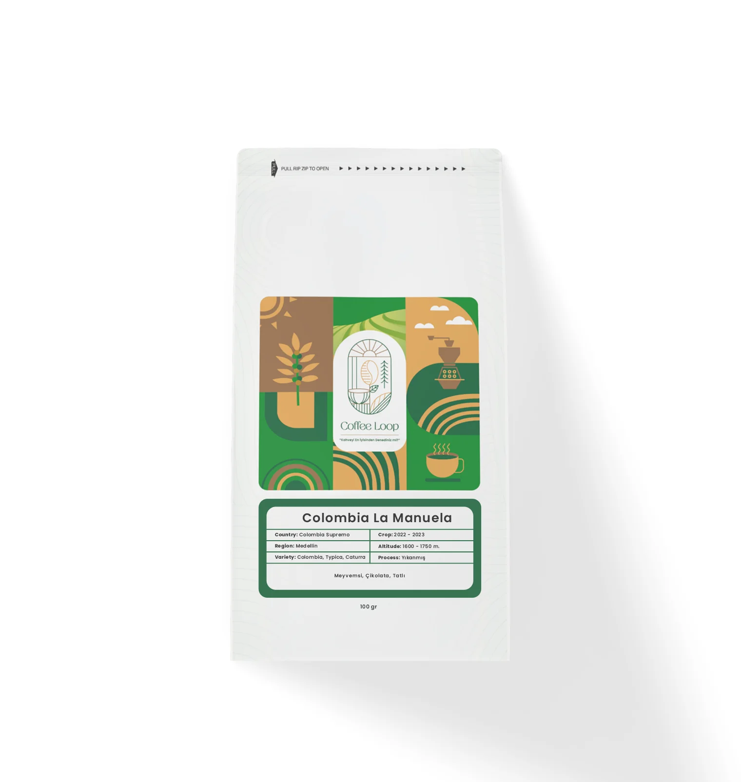 Colombia La Manuela, Colombia, Typica ve Caturra çeşitlerinin harmanlanmasıyla üretilir. Bu kahve çeşitleri, meyvemsi ve tatlı aromaları ile bilinir ve özellikle çikolata notalarıyla zenginleşmiştir.